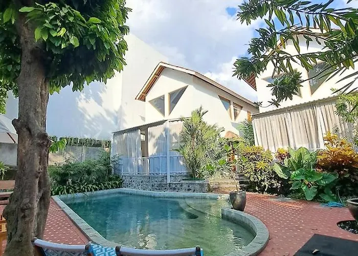 该别墅距离伍拉-赖国际机场有26分钟车程,是一个便捷的住宿选择。 这里还有私人游泳池。